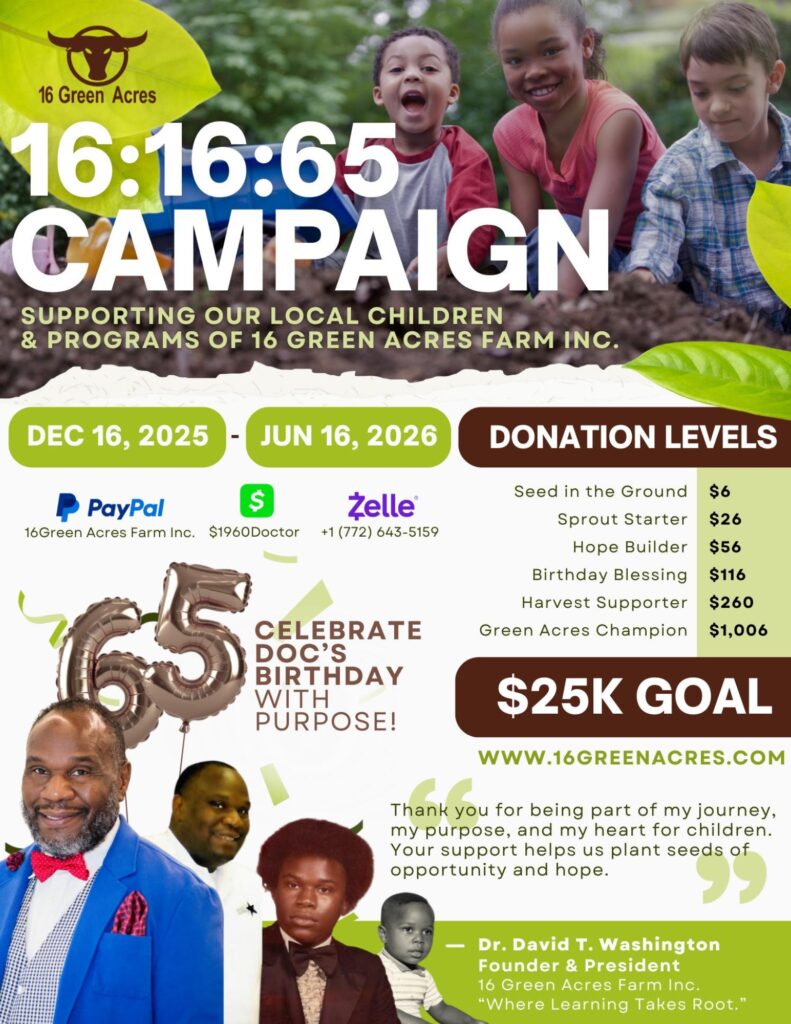 At 16 Green Acres Farm, your support helps us provide academic tutoring, hands-on agricultural learning, youth workforce training, and meaningful community programs for children and families across Florida. Every contribution helps plant seeds of knowledge, growth, and opportunity.